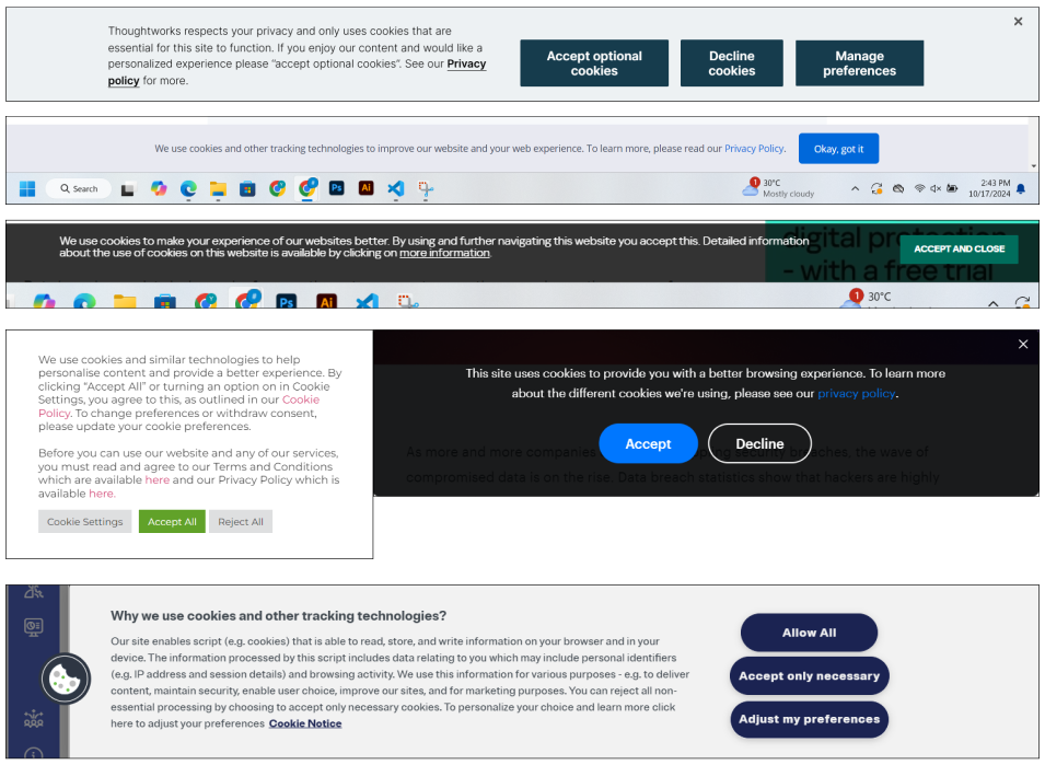 As I was going through the cookie images, I was thinking perhaps rather than just manually screenshot these cookie prompts, thus I intend to further this experiment with the help of my own scraping tool using Selenium. To also add value to this experiment, I was thinking how I could relate this to my project as well.